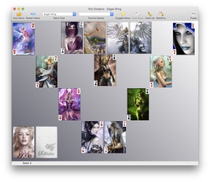 More than 40 types of solitaire are available, including: Agnes Bernauer, Agnes Sorel, Algerian, Australian Patience, Babette, Baker’s Dozen, Black Hole, Canfield, Casket, Chinese Solitaire, Crazy Quilt, Cruel, Diplomat, Eagle Wing, Forty Thieves, Free Cell, Gaps, Golf, Grandfather’s Clock, Josephine, Klondike, Labyrinth, La Belle Lucie, Monte Carlo, Mount Sunflower, Napoleon’s Tomb, Osmosis, Penguin, Putt Putt, Pyramid, Rouge et Noir, Royal Marriage, Royal Parade, Scorpion, Seahaven, Spider, St Helena, Streets, The Clock, The Fan, Trefoil, TriPeaks, Wasp, Windmill, Yukon